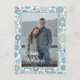 Contemporary classic Scandinavian style Christmas holiday season teal blue and beige coloured snowflakes and mandala ice crystals pattern on a crisp white background. With room to customise or personalise with a photograph and the text on the front, and family name (or individual names), and a customisable season greeting message on the backside of the card. This motif is available on return address labels, wrapping and tissue paper, gift tags, bags and favour boxes, envelope seal stickers, ribbons, notebooks, binders, stationery, and envelopes.