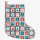 Mosaic tile advent Christmas stocking in green and white. This unique design features tiled Christmas designs in the style of Advent calendar squares that will add a touch of festive fun to your mantle decor.