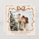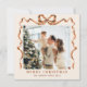 Festive Christmas Beige Boho Bow Ribbon 2 Photo Holiday Card