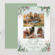 Happy holiday Merry Christmas modern elegant watercolor card with winter botanical floral, green backer design. You can change photos.
