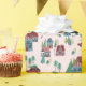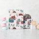 Celebrate the magical and festive holiday season with our custom holiday wrapping paper. Our vintage holiday design features a cute girly pink retro car carrying a Christmas tree. Cute Nordic pink Alpine ski lodge cosy chalet driving a red car with a Christmas tree on the roof pattern all-over print. All artwork contained in this girly vintage Christmas tree & vintage car village wrapping paper are hand-drawn original by Caroline Bonne Müller