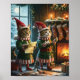 Festive Christmas Cat Elves Preparing for Santa Poster