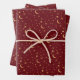 A celestial moon and stars design against a festive deep red background, an ideal gift wrap for the Christmas holiday season.