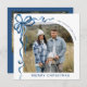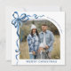 Festive Christmas Dusty Blue Bow Ribbon 2 Photo Holiday Card