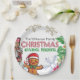 These custom party plates feature a colourful Christmas game night theme. The word "Christmas" is printed in foil balloons with a red and white striped candy cane pattern. "Game Night" is printed in a whimsical green glitter style font. Various holiday and winter inspired images are printed along the corners. A nutcracker soldier is pictured on the left, with a cute gingerbread man in front of him. Candles and a poinsettia are pictured on the right. A sample family name is printed at the top which you can personalise to include your own custom name or text. They're perfect for a night of festive games.