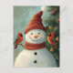 Festive Christmas Greeting Snowman and Cardinals Postcard