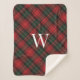 Festive Christmas Holiday Tartan Plaid + Monogram Sherpa Blanket