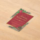 Invite your guests to celebrate the holidays with these beautiful acrylic invitations. The design features gold text on a marbled crimson red background in a golden faux foil frame. The border is transparent and decorated with hand painted watercolor holly leaves, berries, pinecones and pine branches. Traditional, festive, and elegant, these invitations will make an impression! Perfect for a Christmas or non-specific holiday celebration.