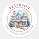 These awesome return address labels with a festive home in winter with snow and Christmas decorations, your last name and address in red will make addressing your Christmas moving cards just that much easier! They are so easy to just stick on the envelope! The font is crisp and clean making them look modern yet traditional. It is so easy to make these your own. Simply select Personalise this template and type in your family name and your address. It's that easy!