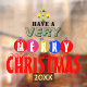 Festive ornaments in red, pink, gold, blue have the word Merry written inside. Colourful typography tree with yellow stars on top. Personalise Year on brown tree trunk bottom. Have A Very Merry Christmas is written in bright fun lettering. Original Artwork Design by TamiraZDesigns.