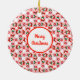 Festive Christmas pattern featuring red stockings, holly leaves, berries, and snowflakes.