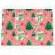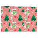 Celebrate the holiday spirit with a cute pattern featuring trees, stockings, and stars on pink background.