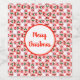 Festive Christmas pattern featuring red stockings, holly leaves, berries, and snowflakes.