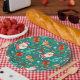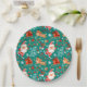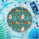 A festive Christmas design with Santa Claus, reindeer, trees and presents.