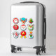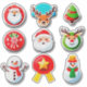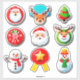 A bright collection of playful Christmas stickers including Santa, a reindeer, a Christmas tree, a snowman, and candy cane accents. Ideal for scrapbooks, gift tags, seasonal crafts, and festive scenes.