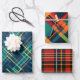 Festive Christmas Stylish Plaid Pattern Set of 3 Wrapping Paper Sheet