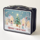 Festive Christmas Tree and Snowmen Scene Metal Lunch Box
