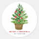 Festive Christmas Tree on Wicker Basket Christmas Classic Round Sticker
