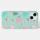 Protect your phone in holiday style with this cheerful Christmas pattern featuring pink, green, and blue trees on a mint background.
