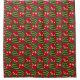 Festive Christmas Tree pattern on red background. A really adorable Christmas Holiday tree decorated with ornaments and gold star on top and pearls made as garland in gold. Snowflakes surround the trees. A real holiday treat!