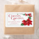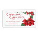 Colourful and festive red and green poinsettias on blank label with green border and editable text fields on white background.