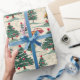 Decorative wrapping paper featuring cheerful Christmas trees adorned with ornaments, star toppers, and colourful vintage cars, capturing the spirit of the holiday season in a whimsical design.