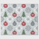 Festive Christmas Wrapping Paper with Snowflakes, Ornaments, and Trees - Red, Blue, White Holiday