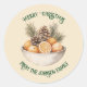 Festive customisable sticker with traditional citrus fruits, pine cones and greenery.