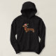 This is a charming cartoon illustration of a dachshund wearing a festive Santa hat adorned with a green feather. The dog sports a red collar with a heart-shaped tag, giving it a cheerful and heartwarming holiday vibe. The artwork highlights the dachshund's signature long body, floppy ears, and friendly demeanour, making it perfect for holiday cards, pet-themed decorations, or digital designs.