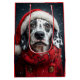 This adorable Dalmatian dog brings the holiday spirit to life, dressed in a cosy Santa Claus hat and red winter coat. With a gentle expression and snowy background, this portrait captures the warmth and charm of the season. Perfect for spreading holiday cheer!