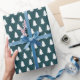 Festive Deep Teal White Christmas Tree pattern Wrapping Paper