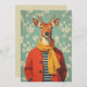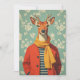 Bring holiday cheer and whimsical charm to your space with this festive illustration of a stylish deer dressed for the season. Wearing a bold red coat, a classic navy-and-white striped shirt, and a cosy mustard-yellow scarf, this fashionable deer stands against a soft teal background adorned with white floral patterns—reminiscent of falling snow. Perfect for Christmas cards, holiday decorations, seasonal gifts, or winter apparel, this anthropomorphic deer captures the joyful spirit of the holidays with a modern, quirky twist. Great for animal lovers, fashion fans, and anyone who loves a dash of humour in their festive decor.