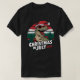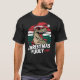 A dinosaur adorned in a Santa hat and sunglasses, exuding a cool and festive vibe.