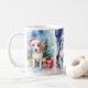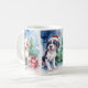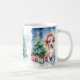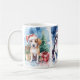 Celebrate the holiday season with this charming mug featuring three adorable dogs dressed in festive attire. Each pup is adorned with a Santa hat, adding a touch of holiday cheer. Set against a wintery backdrop with decorated Christmas trees and wrapped presents, this delightful illustration captures the joy and warmth of Christmas. Perfect for dog lovers, this mug makes a wonderful gift or a festive addition to your own collection.