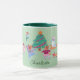 Add a dose of holiday charm to your morning coffee or tea with our "Festive Dogs Ice Skating Green Christmas Two-Tone Coffee Mug." This whimsical design showcases a playful watercolor and gouache illustration of six adorable dogs—including a pink poodle, Old English Sheepdog, corgi, Labrador retriever, and dachshund—joyfully ice skating in a magical winter wonderland.