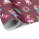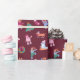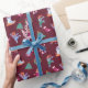 Festive Dogs IceSkating Pattern Dark Red Wrapping Paper