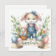 Festive Easter Basket Bunny Overalls Illustration Holiday Card