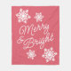 This fleece blanket is a wonderful way to keep your kids or yourself warm and cosy during the cold winter days. It features a fun classic holiday Merry & Bright greeting wish and several fun frosty ice crystals or snowflakes, creating a cheerful and festive pattern. The blanket is made of soft and fluffy fabric that is gentle on your skin and easy to wash. The fleece blanket is also available in three different sizes, and the largest one is a generous size that can cover you from head to toe. Whether you want to use it for snuggling on the couch, for your children to sleep under at night in their bed, or decorating your home, this fleece blanket is perfect for use during the Christmas holidays. Order yours today and enjoy the comfort and joy of this lovely fleece blanket.