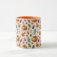 Enhance your dining or kitchen area with this autumn-themed mug. The design incorporates lively leaves, acorns, and vibrant pumpkins, offering an effective method to decorate and introduce seasonal warmth and colour to your space throughout the fall. This mug features a combination design with orange colour on the interior and handle. Various mug styles are available; please select the one that best suits your requirements. AI image by Susang6.