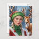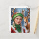Festive Fantasy blonde woman and deer Christmas Postcard
