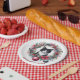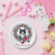 If you love cats and Christmas, you will love this design on paper plates. It features a cute black and white kitten sitting in a wreath of Christmas decorations. The wreath is made up of pine branches, and red flowers and ornaments. This design is perfect for cat lovers and is great for the holiday season.