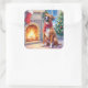 Festive Fireplace Boxer Christmas Art Square Sticker