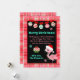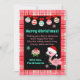 This cute and fun holiday card can be personalised with a family name or title. It features an adorable flamingo in a santa's hat and fairy lights on a pink and red plaid background. The text combines sans serif fonts for a stylish and modern look. Winter snowflakes and patterned baubles add a festive touch.