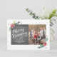 Add an extra festive touch to your holiday greetings with this 1-photo card, featuring hand lettered calligraphy artwork and hand drawn foliage, all on a trendy chalkboard background.