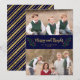 Vertical Holiday Photo Card that can showcase 2 of your photos featuring the words "Merry and Bright" in a stylish script in faux gold surrounded by festive leaves and berries against a blue background. Card includes a blue and faux gold stripes backside. Check out other holiday items here https://www.zazzle.com/collections/holiday_christmas_new_year_cards-119015800351034065?rf=238364477188679314
