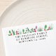 This festive return address label features watercolor holly, mistletoe, and pine foliage in red and green..