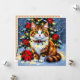 A personalized Christmas card with a front cover of a festive cat, poinsettias and a Christmas tree outside on a snowy day. On the back you can add a custom message and three family photos!