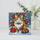 Festive Folk Art Cat with Family Photos Custom Holiday Card