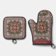 Festive Forest Animals Patchwork Monogrammed Oven Mitt & Pot Holder Set