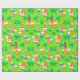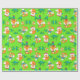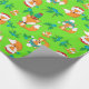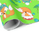 Festive Foxes and Holly Leaves on a Bright Green Wrapping Paper